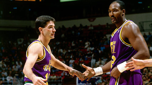 很少球迷知道这个1.85米的小个子,他也是1984届的辉煌一员,16号秀,和乔丹同届,两人同时代竞技了十几年。斯托克顿也并非一出道就像乔丹一样厉害,他不是奥拉朱旺和乔丹这种天赋满满的球员,而是从替补打起的球员。他的菜鸟赛季只有场均5.6分、1.3篮板、5.1助攻的数据,只是一个替补的轮换球员。