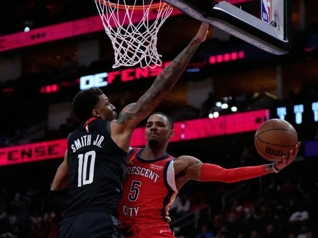拿上一场对阵火箭的比赛来说,鹈鹕客场105-107不敌对手,但是德章泰穆雷的表现可以说相当不错: